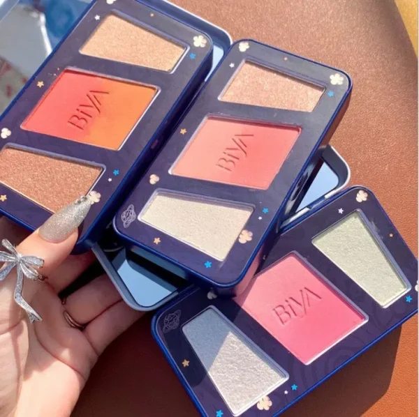 3 in 1 Colors Facial Blush Gradual Powder Blusher Shimmer Highlighter Three-dimensional Brightening Powder Blusher Palette – Biya Korean Highlighter & Blush Palette